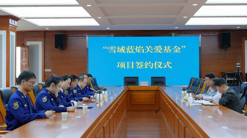圖為(wei) 西藏消防救援總隊召開“雪域藍焰關(guan) 愛基金”項目簽約儀(yi) 式。