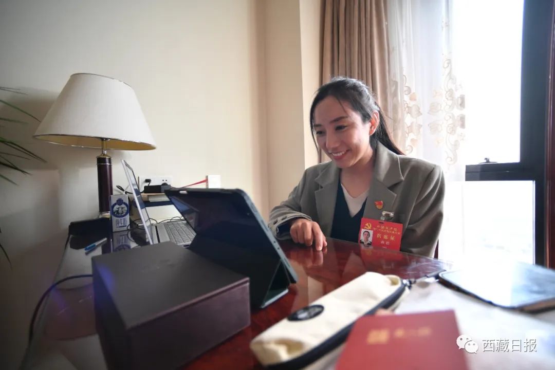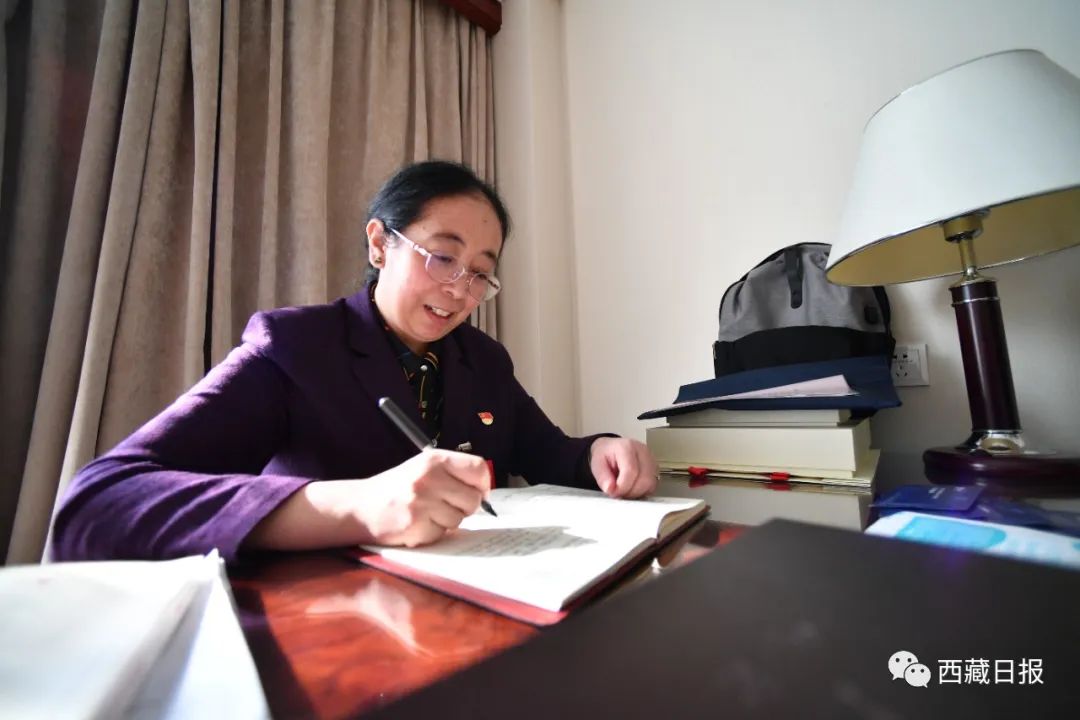 這是次仁拉姆代表在撰寫(xie) 發言材料。記者 旦增西旦 攝