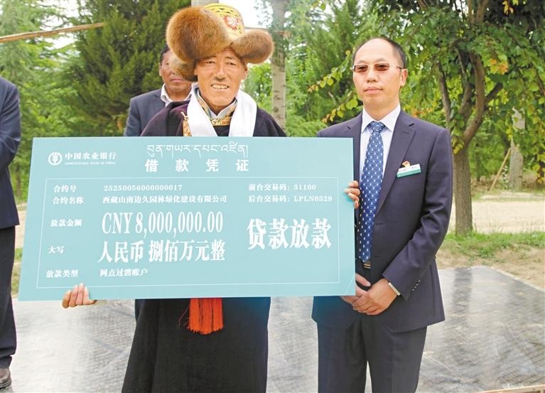 農(nong) 行山南分行為(wei) 山南邊久園林有限公司發放西藏自治區首筆林權抵押貸款。