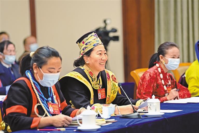10月17日,西藏代表團舉(ju) 行分組會(hui) 議,認真討論黨(dang) 的二十大報告。 圖為(wei) 西洛卓瑪代表(中)在會(hui) 上發言。 旦增西旦 攝