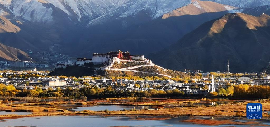 這是從(cong) 拉魯濕地方向拍攝的布達拉宮(10月29日攝)。新華社記者 沈虹冰 攝