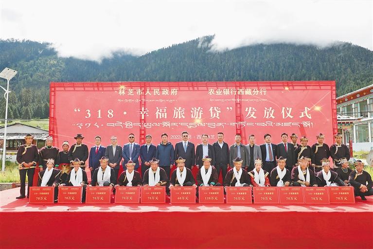 農(nong) 行林芝分行聯合林芝市旅遊發展局創新推出“318·幸福旅遊貸”,這是發放儀(yi) 式現場。