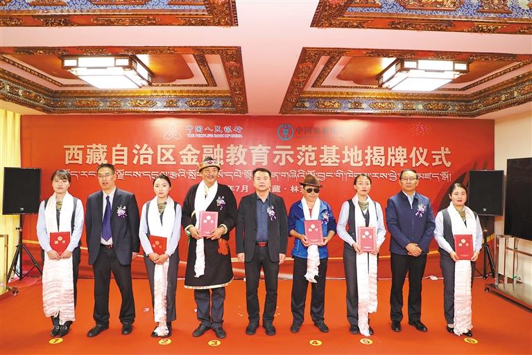 圖為(wei) 林芝市首個(ge) 自治區級金融教育示範基地在農(nong) 行林芝分行揭牌。