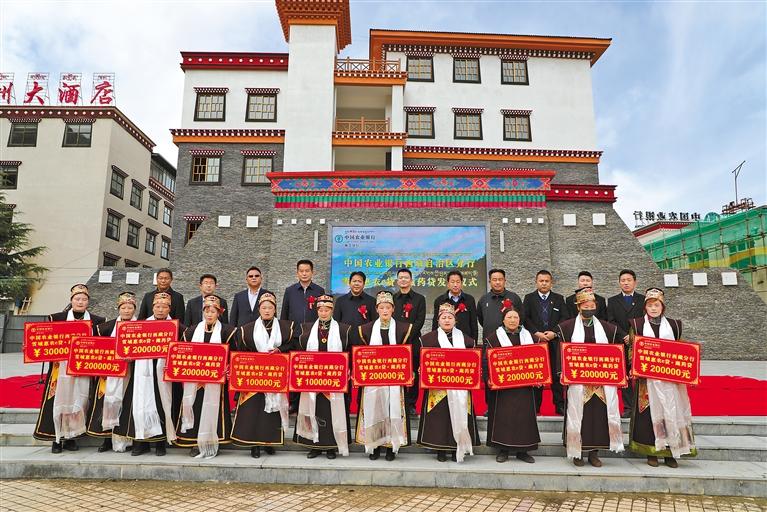 農(nong) 行林芝分行創新推出“藏藥貸”線上信貸產(chan) 品,支持藏藥產(chan) 業(ye) 發展。這是發放儀(yi) 式現場。 (圖文均由農(nong) 行林芝分行提供)