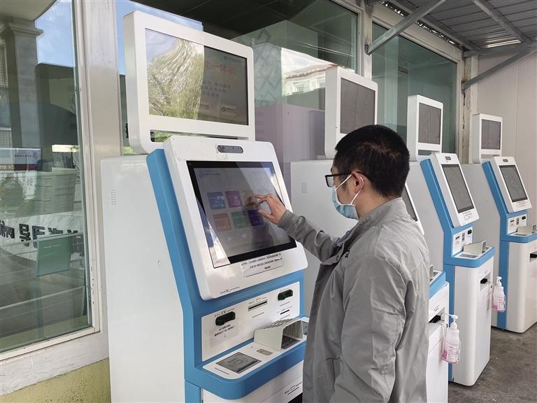 拉薩市民正在使用醫院內(nei) 的一體(ti) 機掛號。記者 趙越 攝