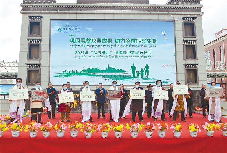 農(nong) 行那曲分行聯合色尼區委舉(ju) 辦“鞏固拓展脫貧攻堅成果、助力鄉(xiang) 村振興(xing) 戰略”鑽石卡村授牌暨貸款發放儀(yi) 式。 (圖文均由農(nong) 行那曲分行提供)