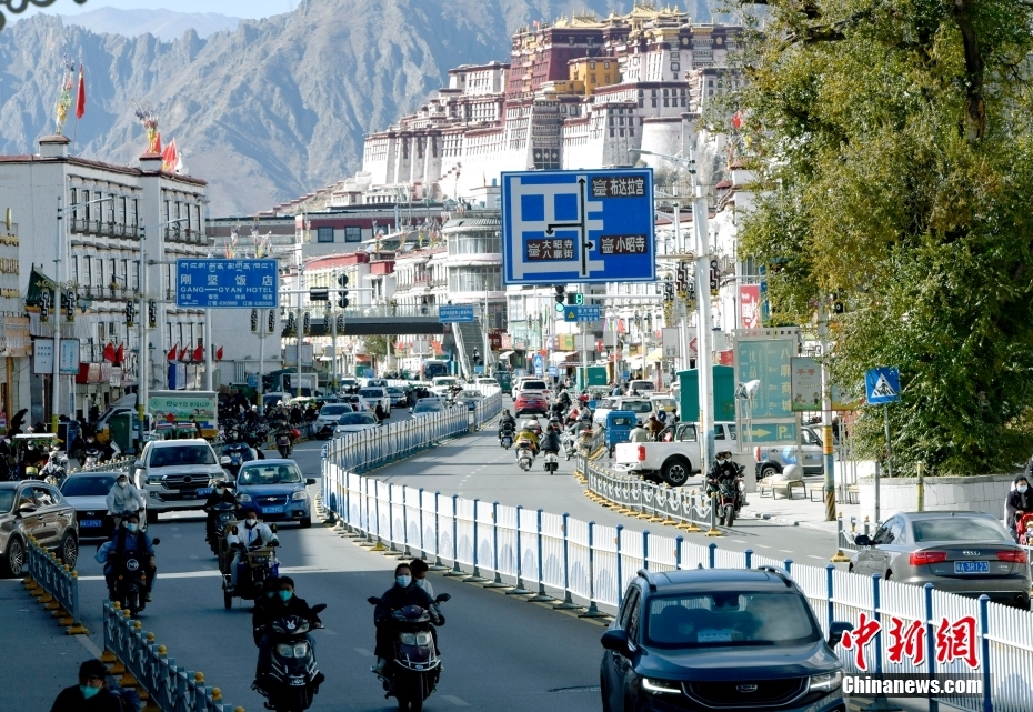 11月17日,拉薩市北京東(dong) 路車流人流漸多。近日,在拉薩八廓街道、吉日街道、吉崩崗街道等主城區及市區主要路段,車流量、人流量逐步恢複。隨著拉薩市新冠肺炎疫情防控形勢持續向好,各行各業(ye) 有序複工複產(chan) ,民眾(zhong) 生活逐步正常,街頭巷尾的“煙火氣”漸濃。 中新社記者 李林 攝