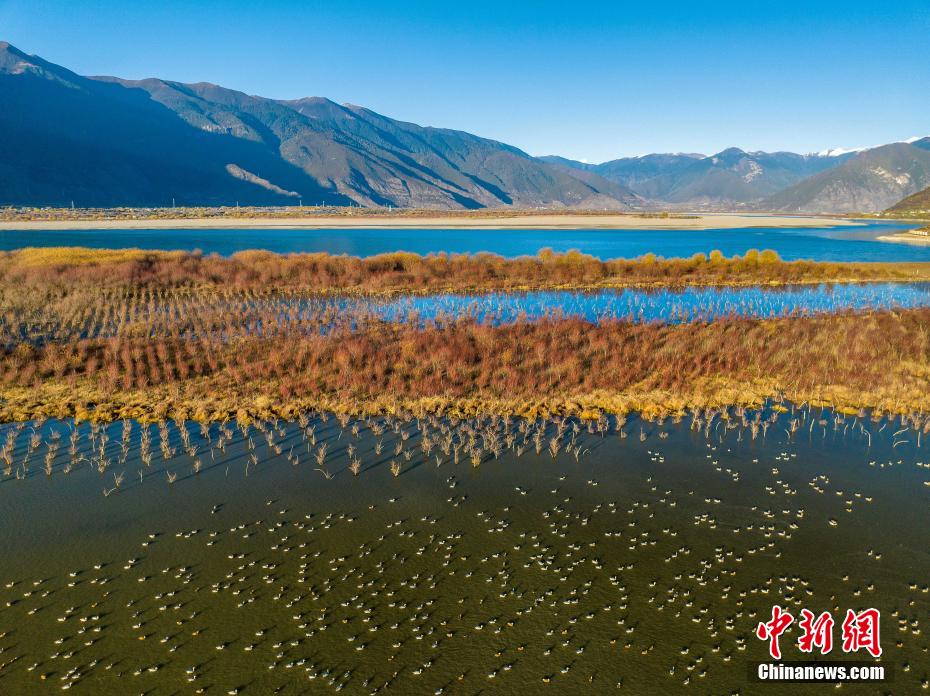 11月19日,西藏林芝雅尼國家濕地公園內(nei) 成群的斑頭雁。 董誌雄 攝