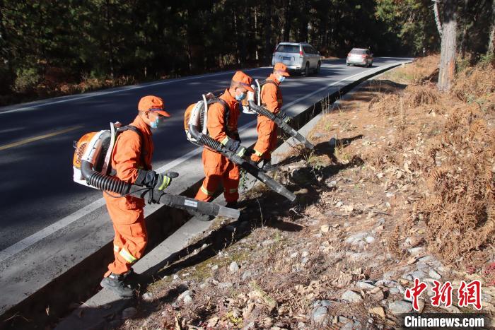 踏查中,中隊出動20人,編排成3個(ge) 小組,攜帶地圖、指北針、無人機等勘察裝備,采取實地查看、詢問了解、研究分析等方式對植被含水量、可燃物載量、水源分布、地形地貌、植被類型、道路交通等情況進行勘察,及時掌握林情、社情等最新數據資料。同時,配合波密縣應急管理局、林草局等部門沿318國道沿線開展林下可燃物清理和灑水增濕作業(ye) 。
