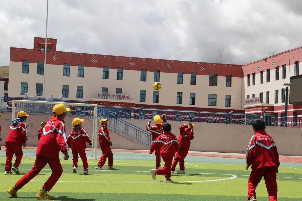 那曲聶榮縣小學的學生們(men) 正在踢足球(4月20日攝)