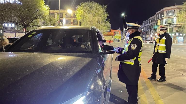 拉薩冬日的夜晚寒風凜冽。夜色中,一輛輛汽車有序通行,街道又恢複了往日的熱鬧。當天晚上9時許,記者跟隨拉薩市公安局交警支隊執法監督大隊民警前往江蘇大道,城南大隊的民警已經設置好路障、標牌,正在對過往車輛逐一進行詳細排查。“您好,請出示駕照。”“您好,請吹氣。”在民警的指揮下,車輛有序通過檢查點。市民紮西多吉駕車經過檢查點後告訴記者,在這麽(me) 冷的天氣裏,交警依然堅守在路麵上,確實令人敬佩,應該為(wei) 他們(men) 點讚。“我會(hui) 牢記‘開車不喝酒,喝酒不開車’,也會(hui) 自覺遵守交通法律法規,文明出行。”紮西多吉說。