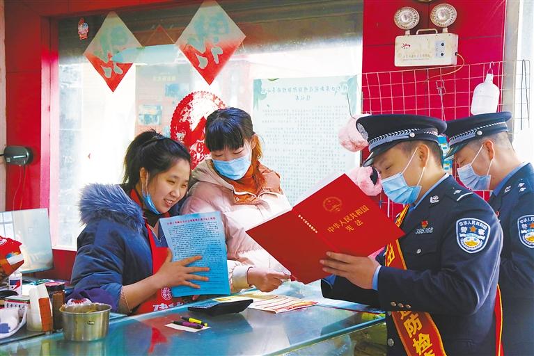 圖為(wei) 西藏樟木口岸聶拉木出入境邊防檢查站民警為(wei) 樟木鎮商戶講解憲法。