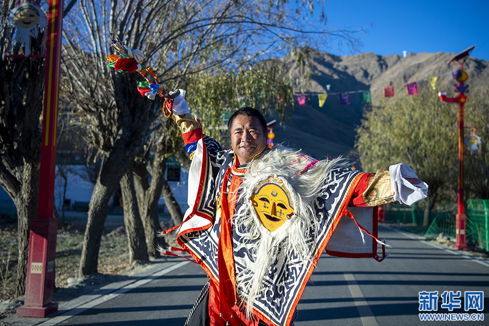 12月9日,雅礱紮西雪巴藏戲傳(chuan) 承人尼瑪次仁在表演藏戲。新華網 旦增努布 攝