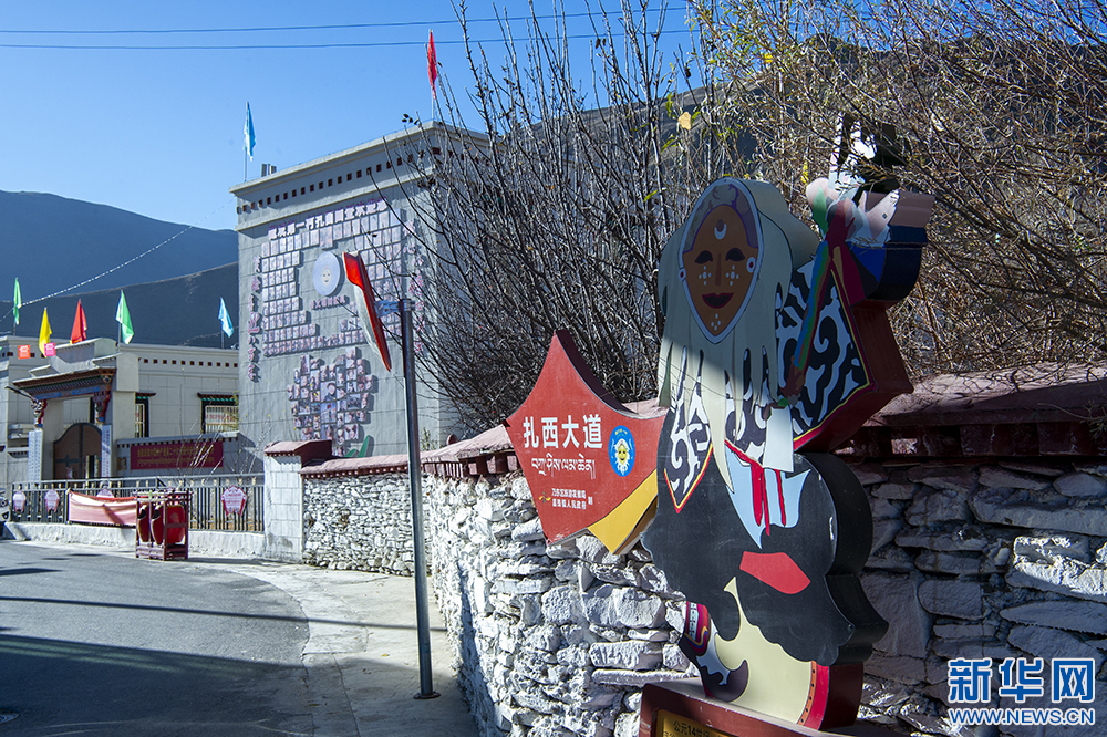 圖為(wei) 紮西曲登社區街邊的藏戲主題指示牌(12月9日攝)。新華網 旦增努布 攝