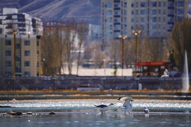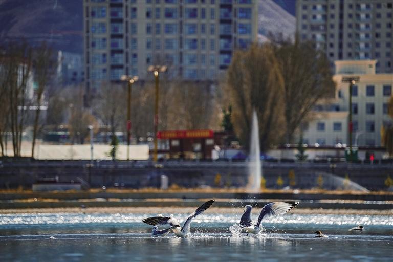 候鳥大約是拉薩入冬的標誌。初冬時節,拉魯濕地和拉薩河邊,到處都是從(cong) 遠方飛來越冬的黃鴨、斑頭雁。隨著拉薩生態環境更加優(you) 美,這些可愛的精靈選擇在此越冬,讓許多觀鳥愛好者心動。每天清晨天還未亮,他們(men) 就早早地守候在水邊,隻為(wei) 記錄下候鳥迎著第一縷朝陽翩然飛舞的景象。
