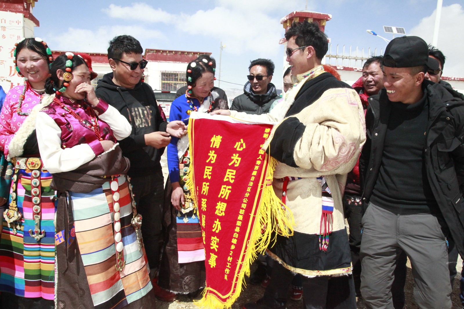 圖為(wei) 中國人壽西藏分公司三個(ge) 駐村點均如期實現整村脫貧,駐村工作隊持續開展工作鞏固脫貧成果,白雄鄉(xiang) 查慶村幹部群眾(zhong) 為(wei) 公司駐村工作隊送上錦旗表示感謝。