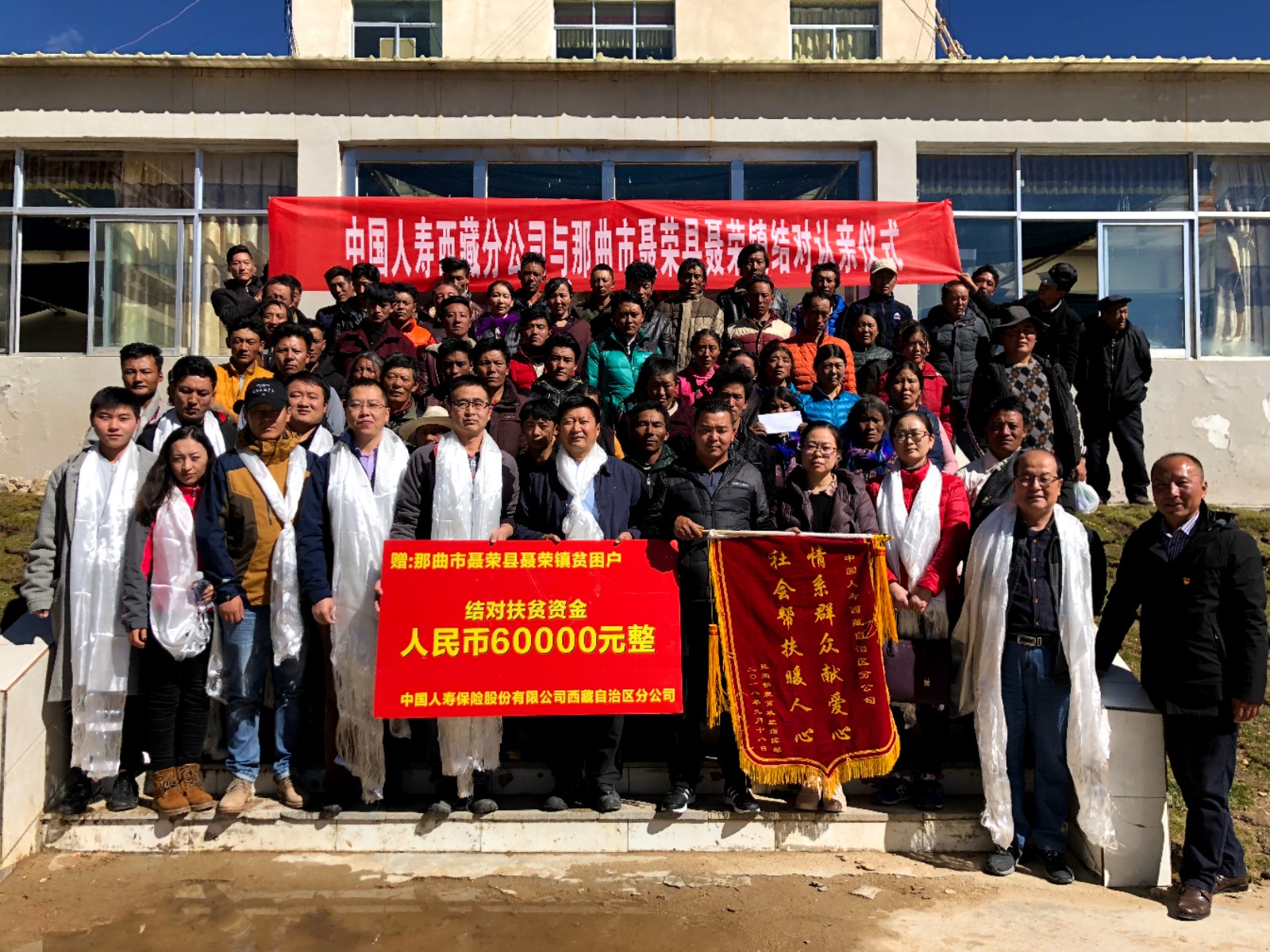 圖為(wei) 中國人壽西藏分公司幹部職工與(yu) 那曲市聶榮縣聶榮鎮開展結對認親(qin) 幫扶活動。