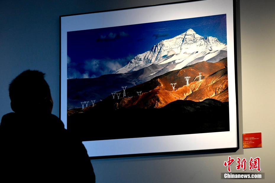 12月25日,展覽中的攝影作品《金色的南迦巴瓦》。 袁林 攝