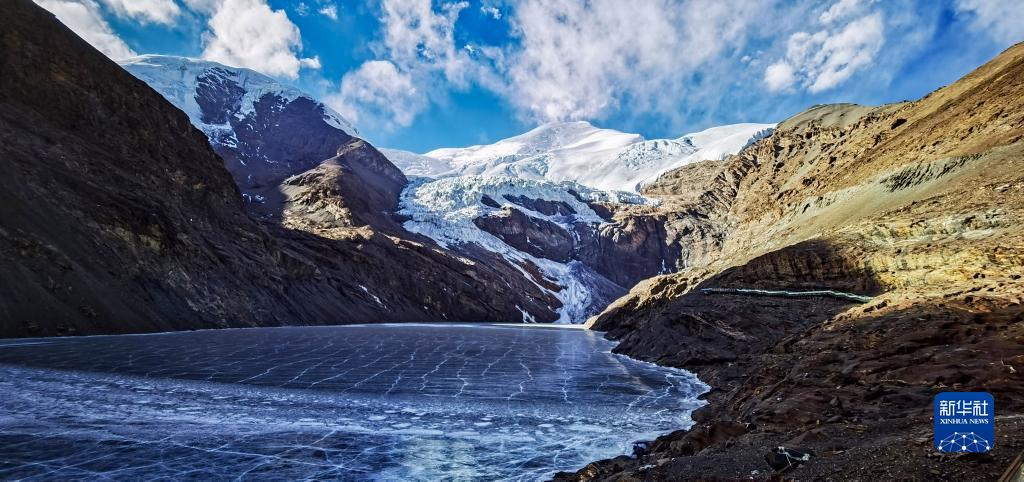 這是崗布錯結冰的湖麵(1月1日攝)。新華社記者 薑帆 攝