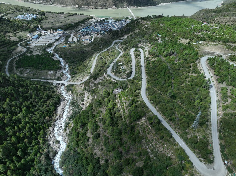 這是2022年9月30日拍攝的派墨公路派鎮起點路段(無人機照片)。新華社發(董誌雄 攝)