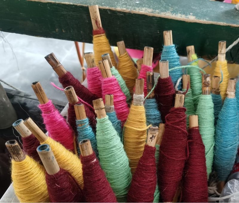 用果皮、蔬菜等染色的環保紗線。次仁曲珍攝