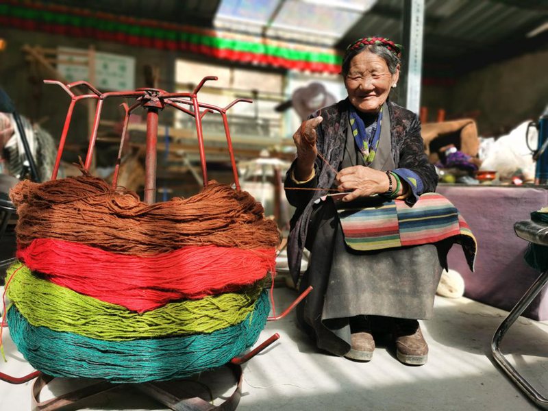 雖然編織坊一直在創新、進步,但是傳(chuan) 統不能丟(diu) 。次仁卓瑪的梭織布藝技能是幾十年功力的沉澱,她在這裏擔任老師的角色,傾(qing) 囊相授。“從(cong) 來沒有想過有一天在家門口上班領工資,心裏頭敞亮了。現在我老了,但是這些手藝要傳(chuan) 下去。”自從(cong) 來到編織坊,75歲的次仁卓瑪老人臉上的笑容就沒消失過。
