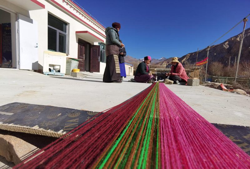冬日的雅江水依舊奔流不息,陽光灑進編織坊裏,五彩梭線來回穿梭,阿佳們(men) 一邊忙活一邊哼唱歡樂(le) 的歌曲。“我們(men) 這兒(er) 的特色就是歡樂(le) 。”次仁曲珍笑著說。