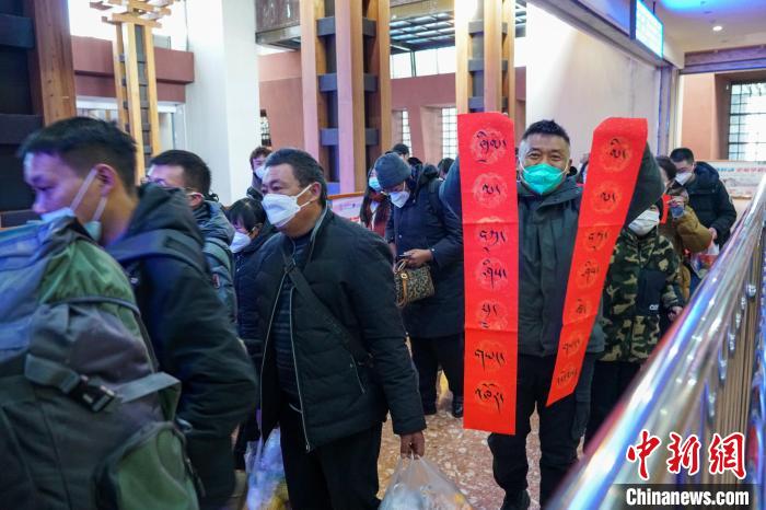 在候車廳,旦增旺久一家獲贈了藏語春聯,他介紹,自己是拉薩堆龍德慶區人,此次是乘火車前往上海觀光旅遊。“每年冬天我們(men) 都會(hui) 去其他省區旅遊,雲(yun) 南、四川,還有江西這些我們(men) 都去過了,今年先去上海,再去廣東(dong) ,計劃趕在藏曆新年前回到拉薩過年。”
