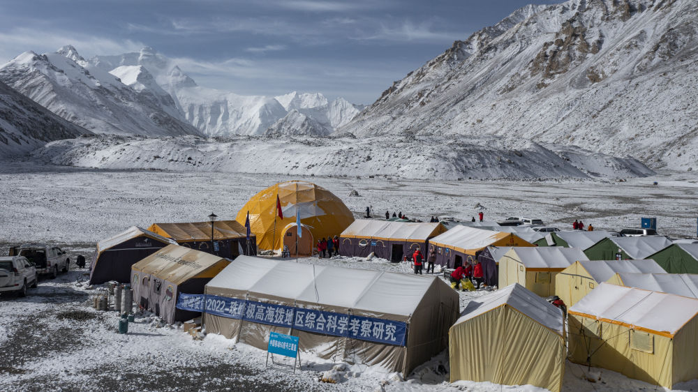 “巔峰使命”珠峰科考營地(2022年5月1日攝)。