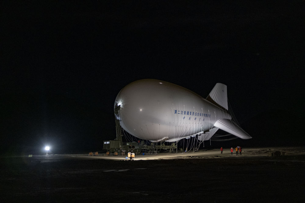 “極目一號”Ⅲ型浮空艇在發放場地準備升空(2022年5月15日攝)。