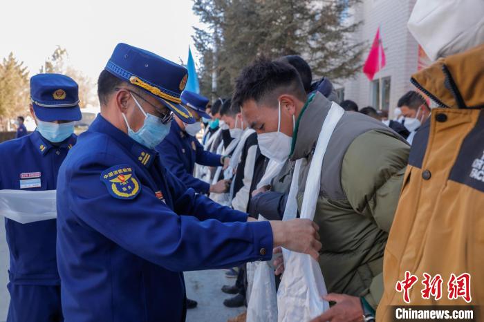 為(wei) 新入營消防員獻上迎接哈達。 侯傑 攝