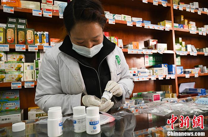 圖為(wei) 西藏拉薩一藥店內(nei) ,銷售員在拆零分裝藥品。 中新社記者 趙朗 攝