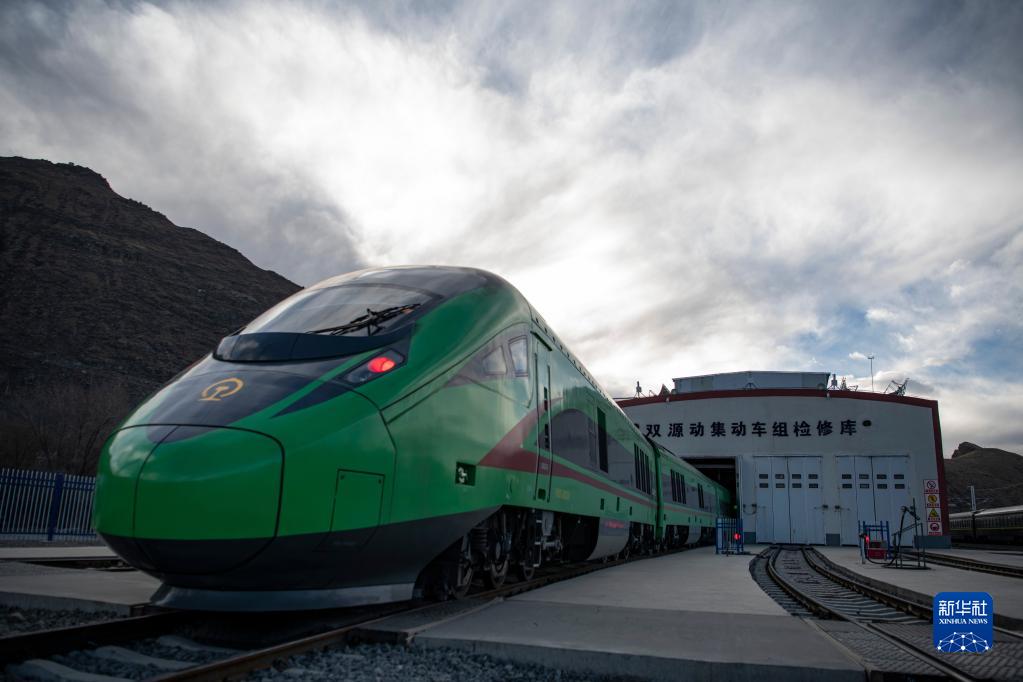 在拉薩機輛整備中心,動車組在檢修庫進行整備作業(ye) (1月10日攝)。新華社記者 孫非 攝