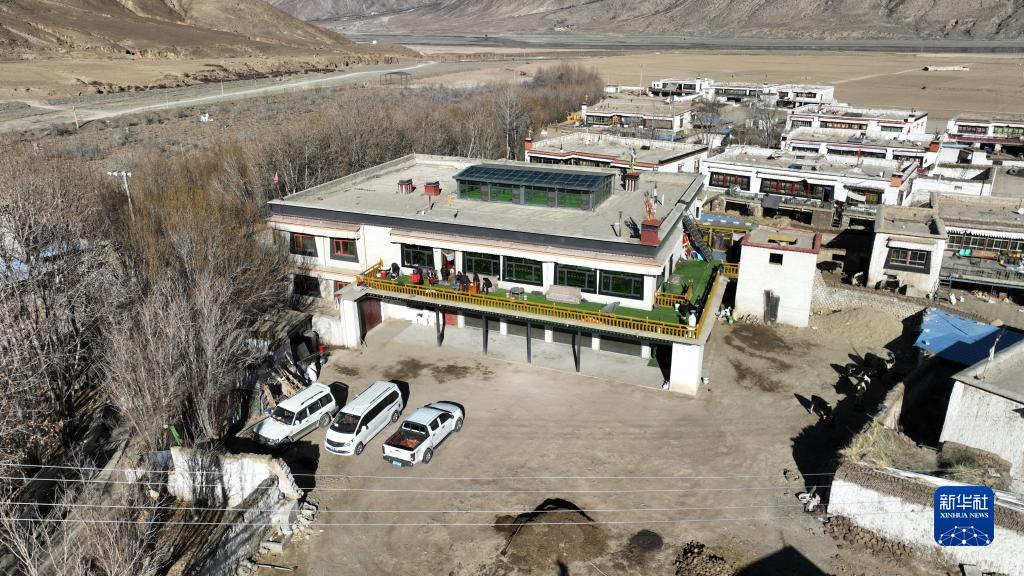 西藏日喀則市拉孜縣紮西宗鄉(xiang) 雜村次旦老人家的二層小樓(1月22日攝,無人機照片)。新華社記者 晉美多吉 攝