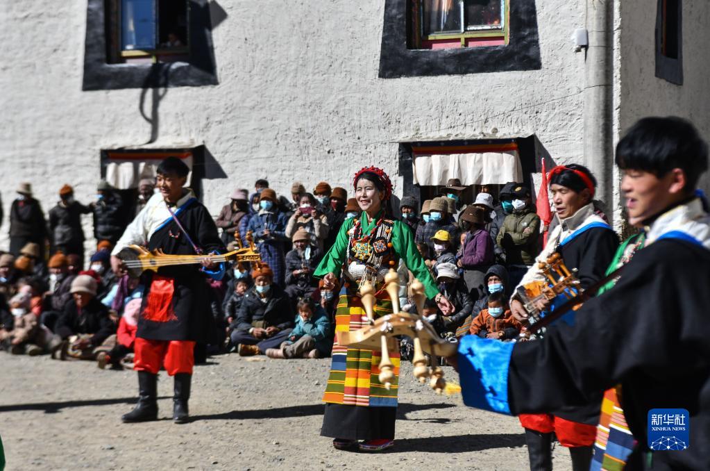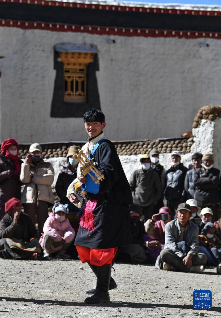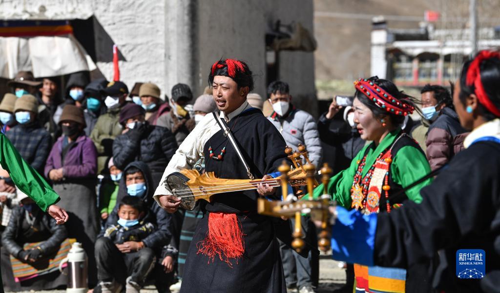 西藏日喀則市芒普鄉(xiang) 普村文藝演出隊在表演(1月21日攝)。新華社記者 晉美多吉 攝
