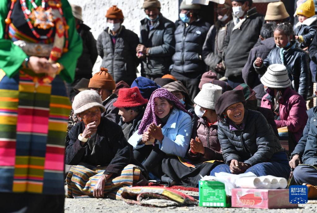 西藏日喀則市芒普鄉(xiang) 普村村民觀看文藝演出隊表演(1月21日攝)。新華社記者 晉美多吉 攝