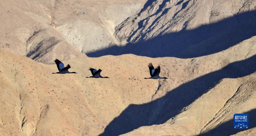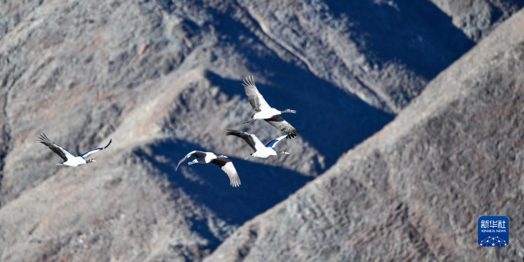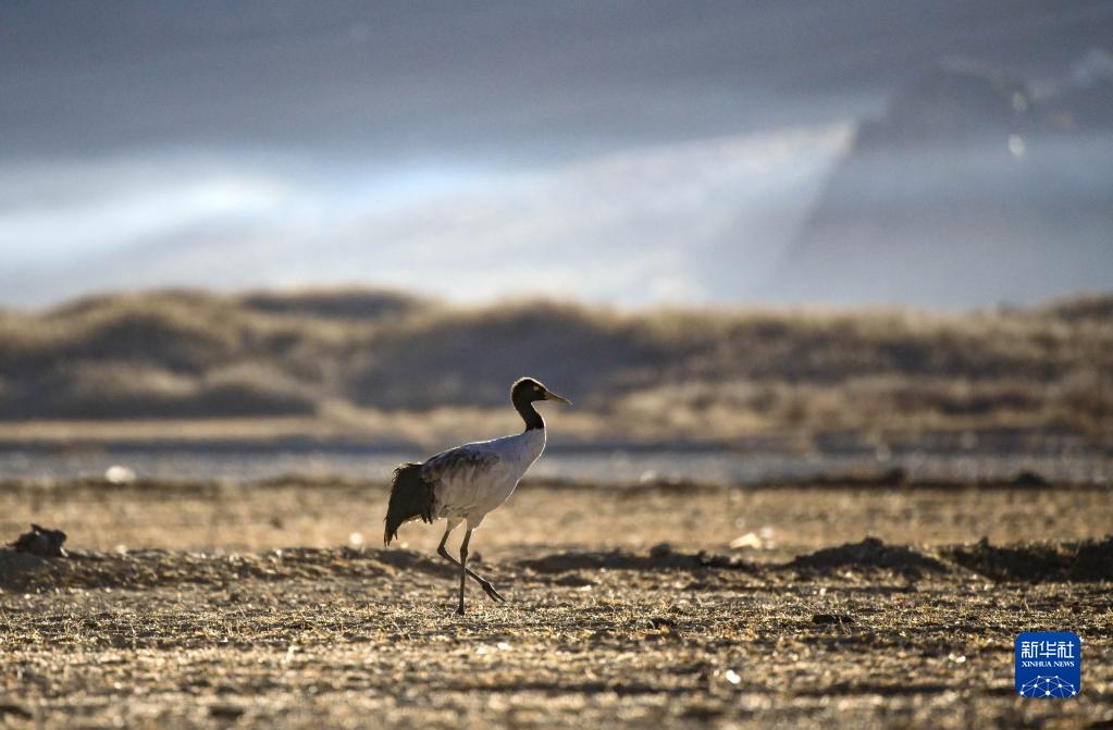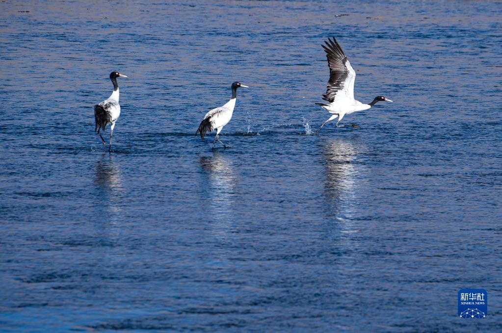 在西藏雅魯藏布江中遊河穀黑頸鶴國家級自然保護區日喀則市拉孜縣越冬的黑頸鶴(1月19日攝)。新華社記者 晉美多吉 攝