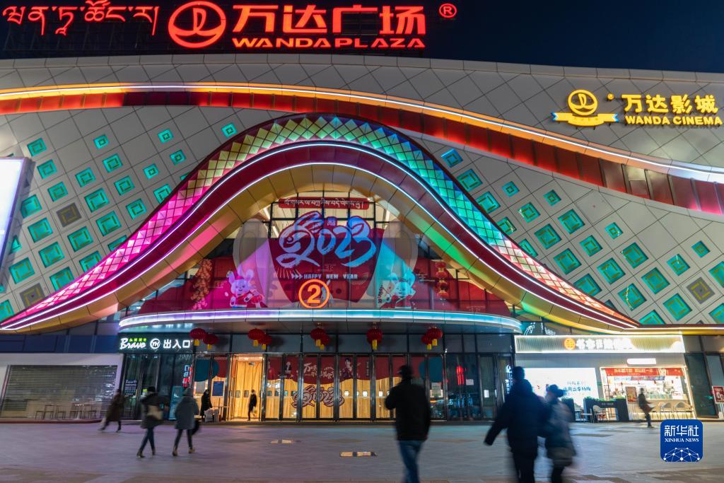 新年到來,拉薩城關(guan) 萬(wan) 達廣場商圈的樓宇外牆貼上了迎接2023年的喜聯,掛上了燈籠等裝飾品,喜慶氛圍濃厚。