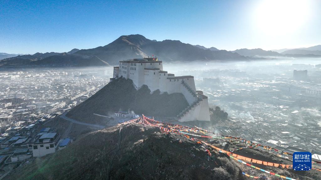 1月24日拍攝的日喀則市的清晨(無人機照片)。新華社記者 晉美多吉 攝