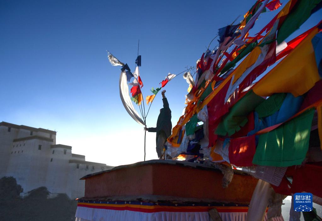 西藏日喀則地方藏曆農(nong) 家新年期間,藏族群眾(zhong) 沿襲傳(chuan) 統,一大早就在山頂和自家屋頂上豎起新經幡,祈願新年風調雨順、國泰民安。