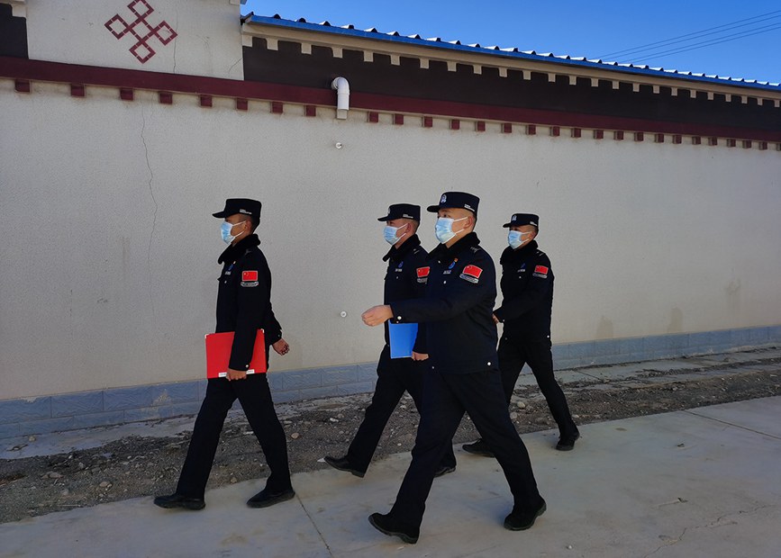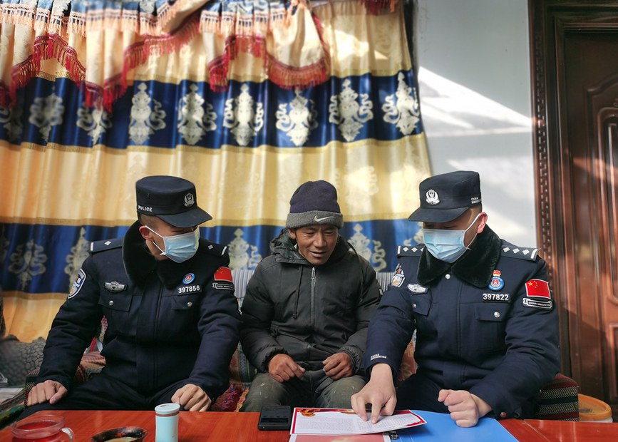 圖為(wei) 普瑪江塘邊境派出所民警開展群眾(zhong) 走訪工作。洛桑曲紮攝
