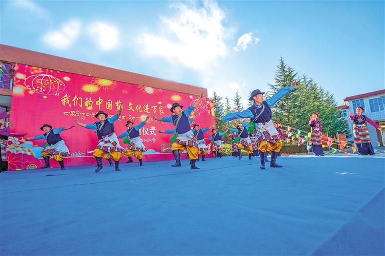 西藏自治區歌舞團演員們(men) 表演精彩的舞蹈節目。通訊員 張啟 記者 格桑倫(lun) 珠 攝