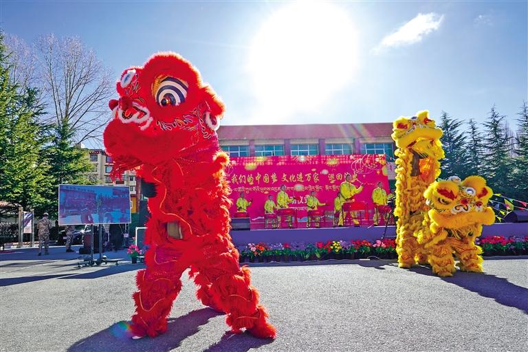 武警西藏總隊拉薩支隊官兵表演舞獅。 通訊員 張啟 記者 格桑倫(lun) 珠 攝