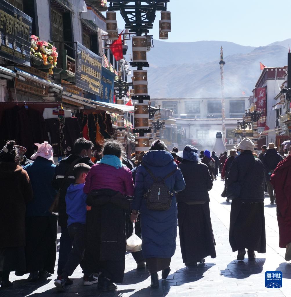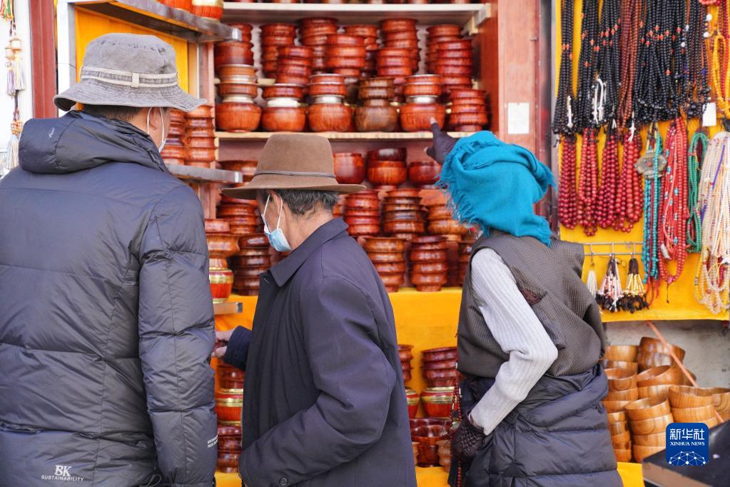 八廓街人來人往,不少本地群眾(zhong) 到此采購藏曆新年所需藏裝、食品等物資。