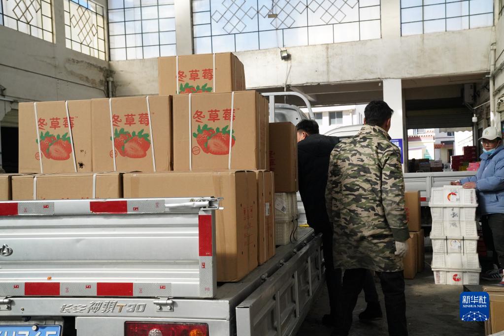 拉薩東(dong) 嘎批發市場裏,來自老撾的香蕉、智利的車厘子正被搬上車廂。“春節期間車厘子、草莓這些水果十分受歡迎。”東(dong) 嘎市場一家水果批發店的店主開心地說,“訂單慢慢變多了,最近平均每天要發出去三四百件水果。”