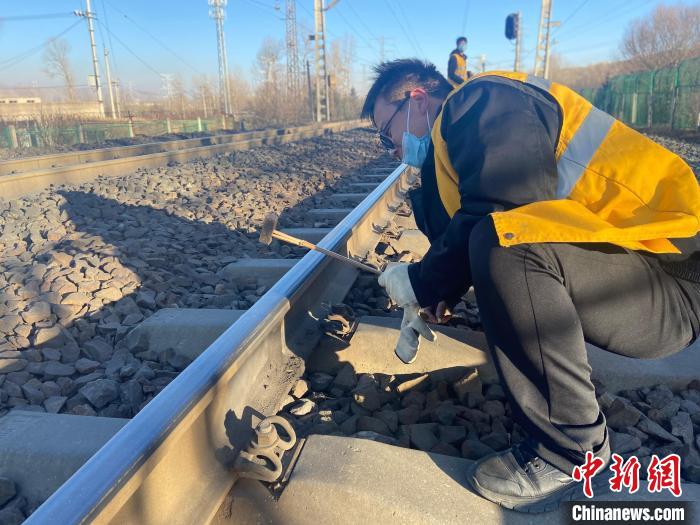 “春運期間,正是鋼軌折斷多發期,一定要仔細檢查線路的高低狀態,一旦有異常必須立刻記錄解決(jue) ,決(jue) 不能馬虎。”走到線路防斷重點區段時,中國鐵路青藏集團有限公司西寧工務段湟源線路車間檢查工區工長侯鵬俯身趴在鋼軌上,仔細觀察並叮囑,鋥亮的鋼軌頂麵反射著刺眼的白光,在他的臉上一閃一閃。