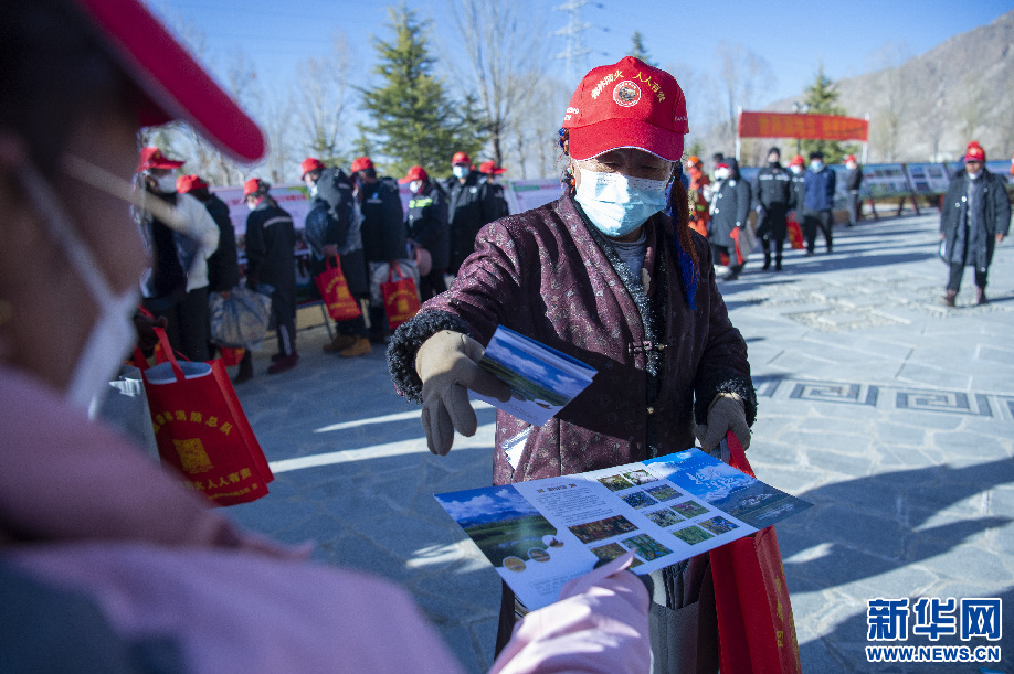 2月2日,拉薩市拉魯濕地國家級自然保護區管理局工作人員向群眾(zhong) 發放濕地保護宣傳(chuan) 單。新華網 旦增努布攝