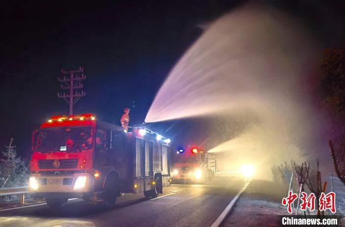 圖為(wei) 森林消防員正在進行灑水增濕作業(ye) 。 林芝市森林消防供圖