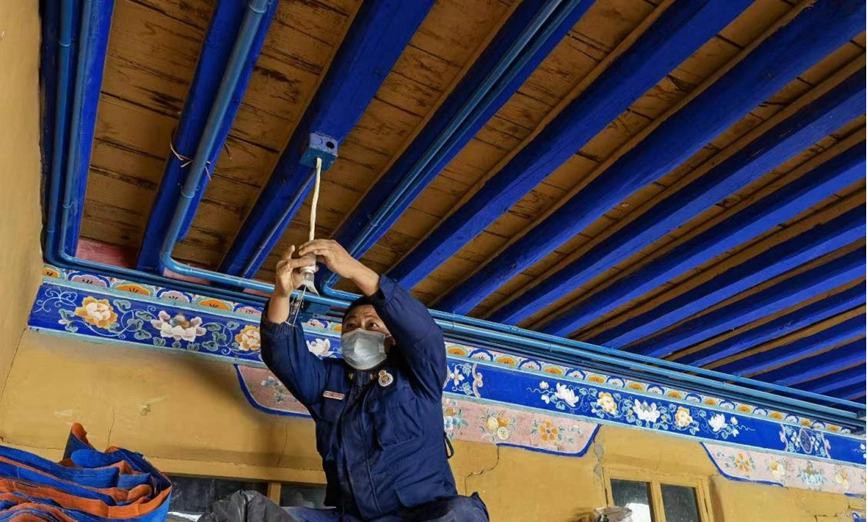 再以布達拉宮為(wei) 例,為(wei) 提高火災預防預警質效,推動敷設線型感溫光纖、加裝吸氣式火災探測係統、增設視頻火災探測器等,搭起了物防技防的四梁八柱。