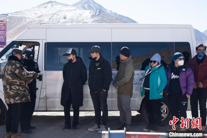 圖為(wei) 遊客排隊接受檢查證件。 貢嘎來鬆 攝